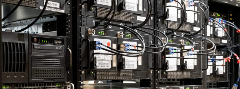 In the computing cluster at Haystack, we have several generations of Intel multi-core processors (6 v1 dual-hexa-cores, 16 v2 dual-deca-cores, and 38 v4 dual-deca-ores) for an total of 1152 compute cores. Generally one playback unit is required per observing station, so we have 11 Mark6 playback units. Because of the asymmetry of the data flow, we have 25 Gbps network paths to the processing nodes but a higher path to the playback units (40 or 50 Gbps). It is all connected with one 100 Gbps network switch. Additional nodes support control and management of the cluster as well as close to 200 TB of temporary storage (for times when more than 11 stations are needed, or when data is delivered via the internet).